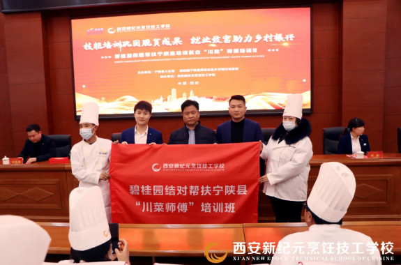 为进一步贯彻落实党中央脱贫攻坚的战略部署,巩固陕西省宁陕县扶贫成果,创新精准扶贫工作模式,积极探索技能培训与乡村振兴、精准扶贫的有机结合,促进宁陕县劳动力实现技能就业、技能创业、技能致富。在宁陕县人社局的指导下,12月28日,碧桂园结对帮扶宁陕县“川菜师傅”培训班开班典礼在西安新纪元烹饪技工学校隆重举行。