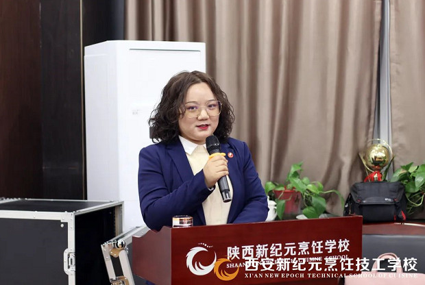 西安新纪元烹饪技工学校招办主任安妮代表校方发表结业致辞
