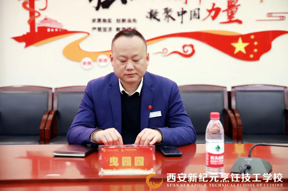 2021年4月23日上午,西安新纪元烹饪技工学校在校本部会议室举行了王牌主厨及西点主厨专业开班仪式。我校校长助理王助理、学区仝主任、实训基地学生处董主管、校本部教务处魏主管、督查办曳主管、总务处刘主管、创就业指导中心詹主管等校领导共同出席了此次仪式。全体同学参加了本次开班仪式。