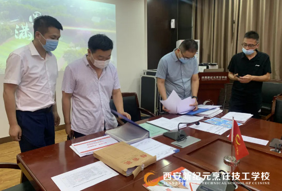2021年8月7日下午,西安市灞桥区人力资源和社会保障局张老师、职业建设能力科乔科长、培训中心魏主任等领导一行莅临西安新纪元烹饪技工学校检查指导疫情防控工作,实地察看疫情防控措施落实情况。陆校长、校长助理王助理、学区仝主任等校领导陪同检查。 检查